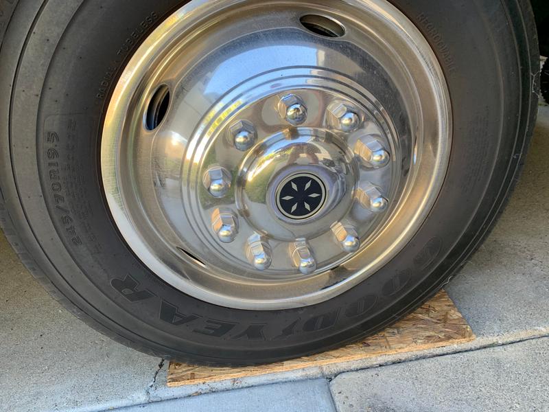 Our wheel covers snap on to the outside of your rv.